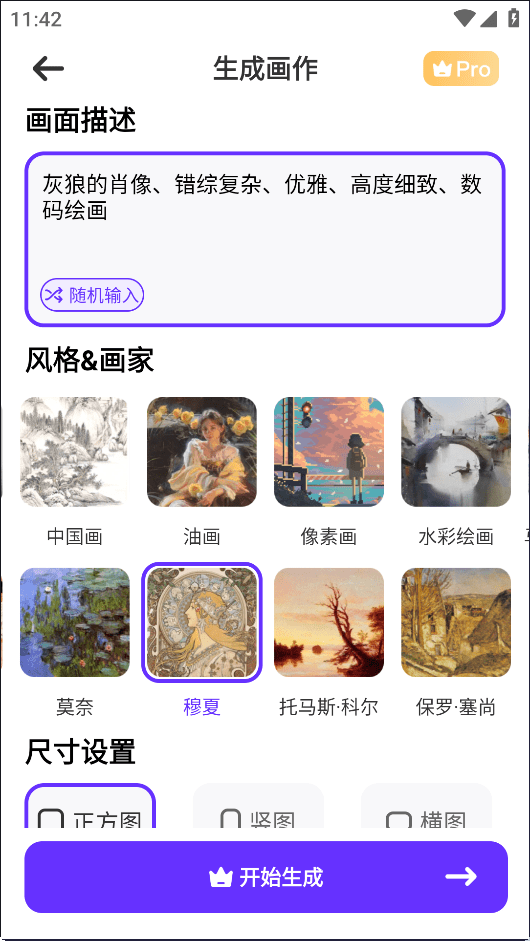 将本人的设法转换为奇特的艺术做品,通过利用深度算法,获得愈加个性的美图。如梵高、毕加索等!